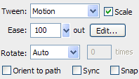 - Включаем анимацию движения на второй стадии. Для этого на палитре настроек (Properties) выбираем из списка Tween: > Motion.